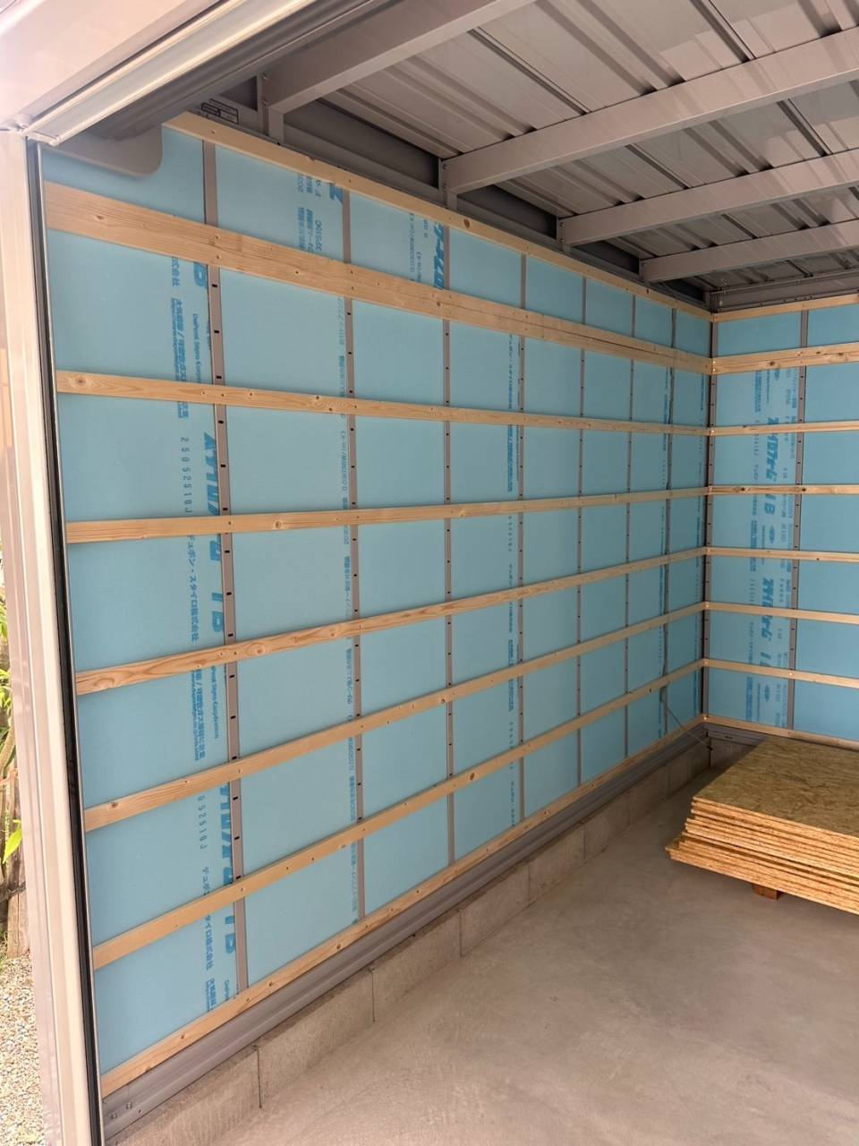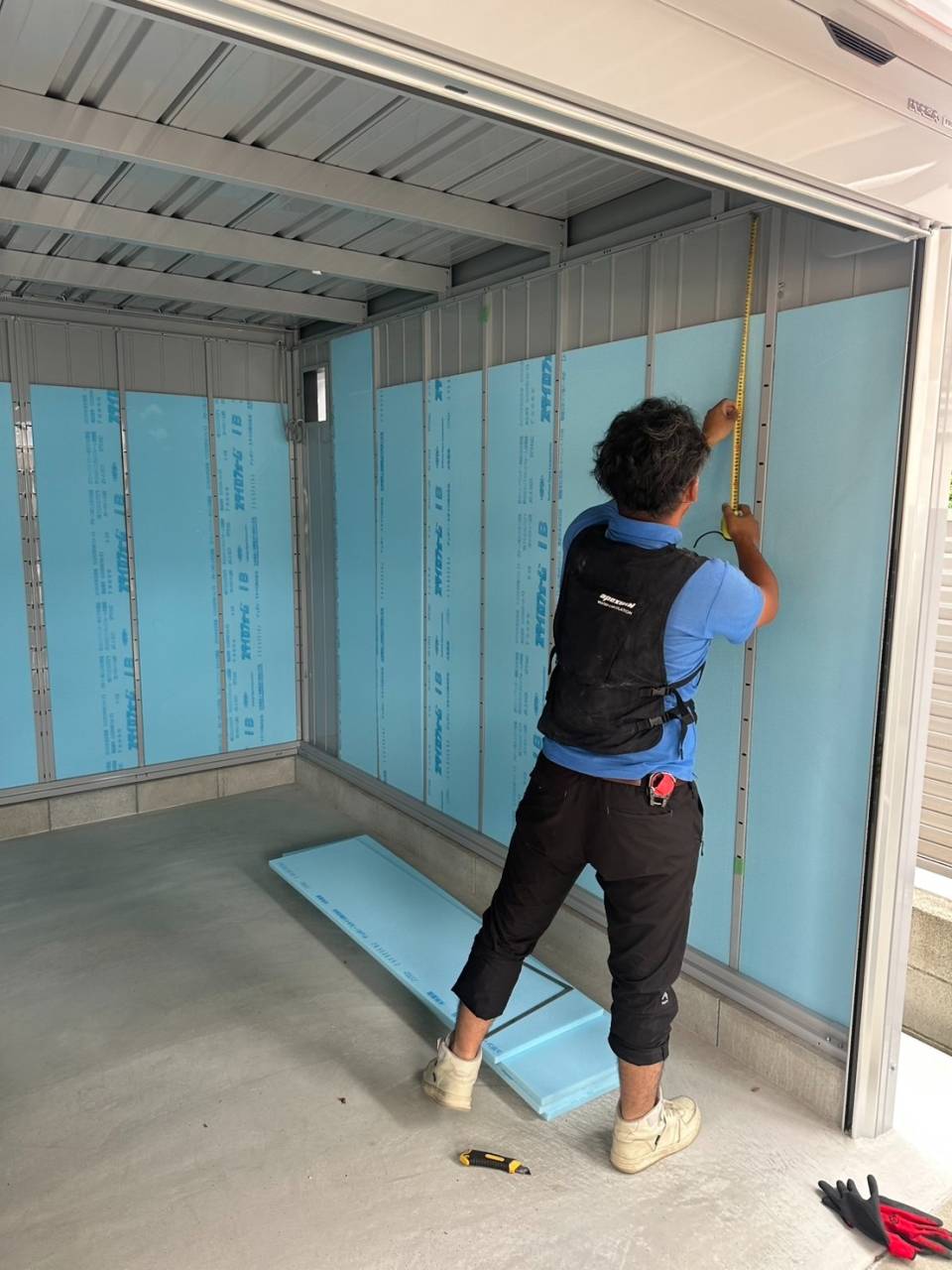 イナババイク保管庫の壁にスタイロ設置 2025/07/02 『稲葉製作所バイク保管庫』の壁にスタイロを設置しました👷 工場にて、事前にスタイロをピッタリのサイズにカットしていたおかげで、2時間で作業を完了!! 建築工事は事前の段取りが大切ですね😎 次回は【OSB合板張り】です。お楽しみに🙇 外壁塗装やキッチンリフォーム、住宅リフォーム工事を幅広くご対応いたします。 ご相談、見積り無料です!リフォームをお考えの方は、 e暮らす 小桜ハウジング株式会社までお気軽にお問い合わせください!! リフォーム