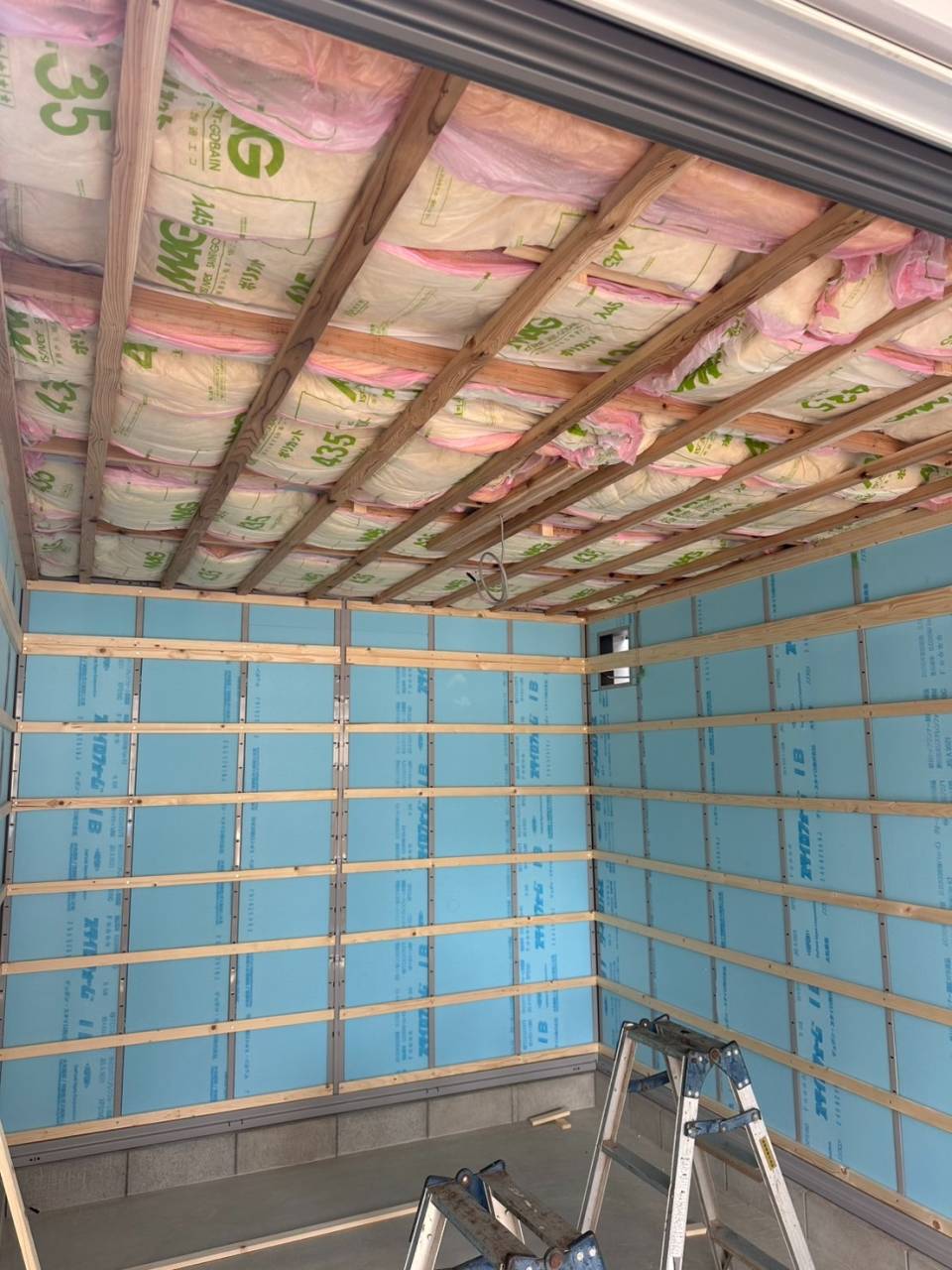 天井にグラスウール、壁にスタイロで断熱は完璧です!!