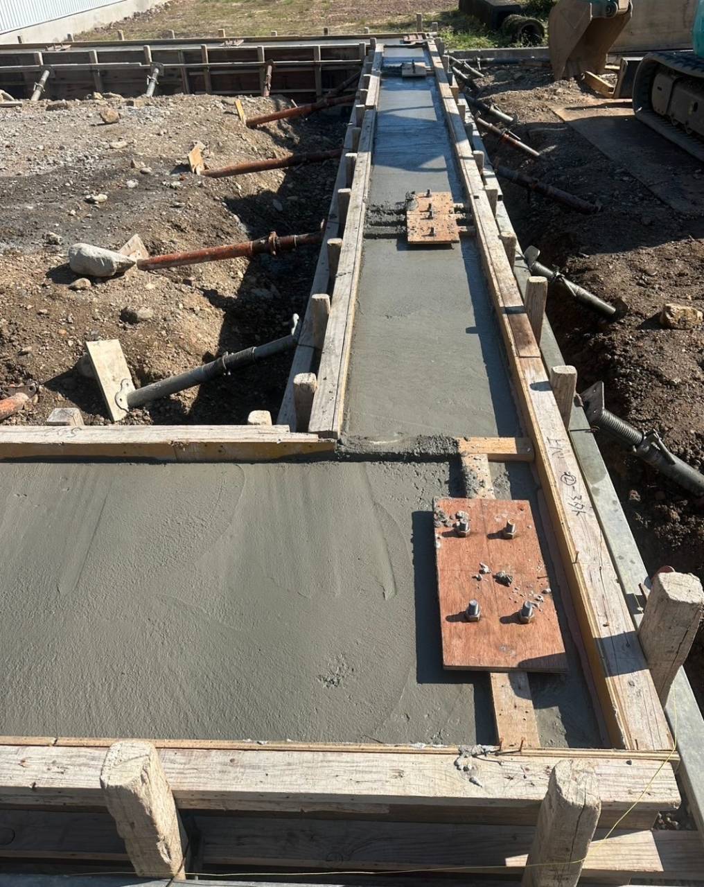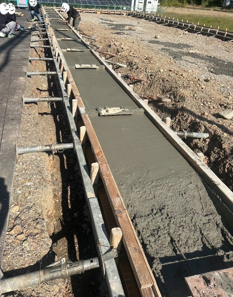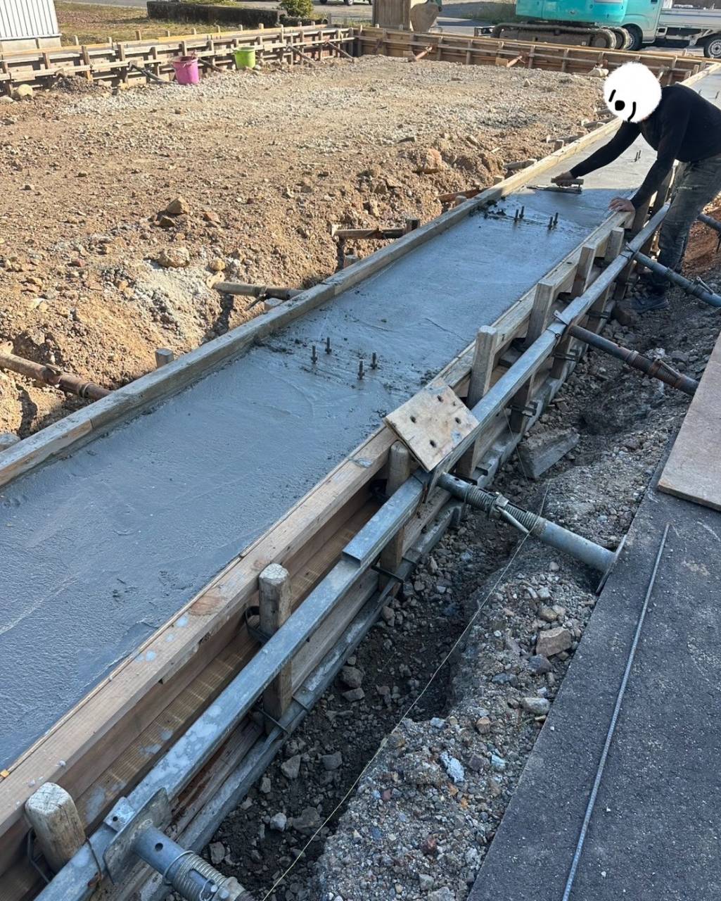 基礎コンクリート打設完了しました!!天端はコテで仕上げます。