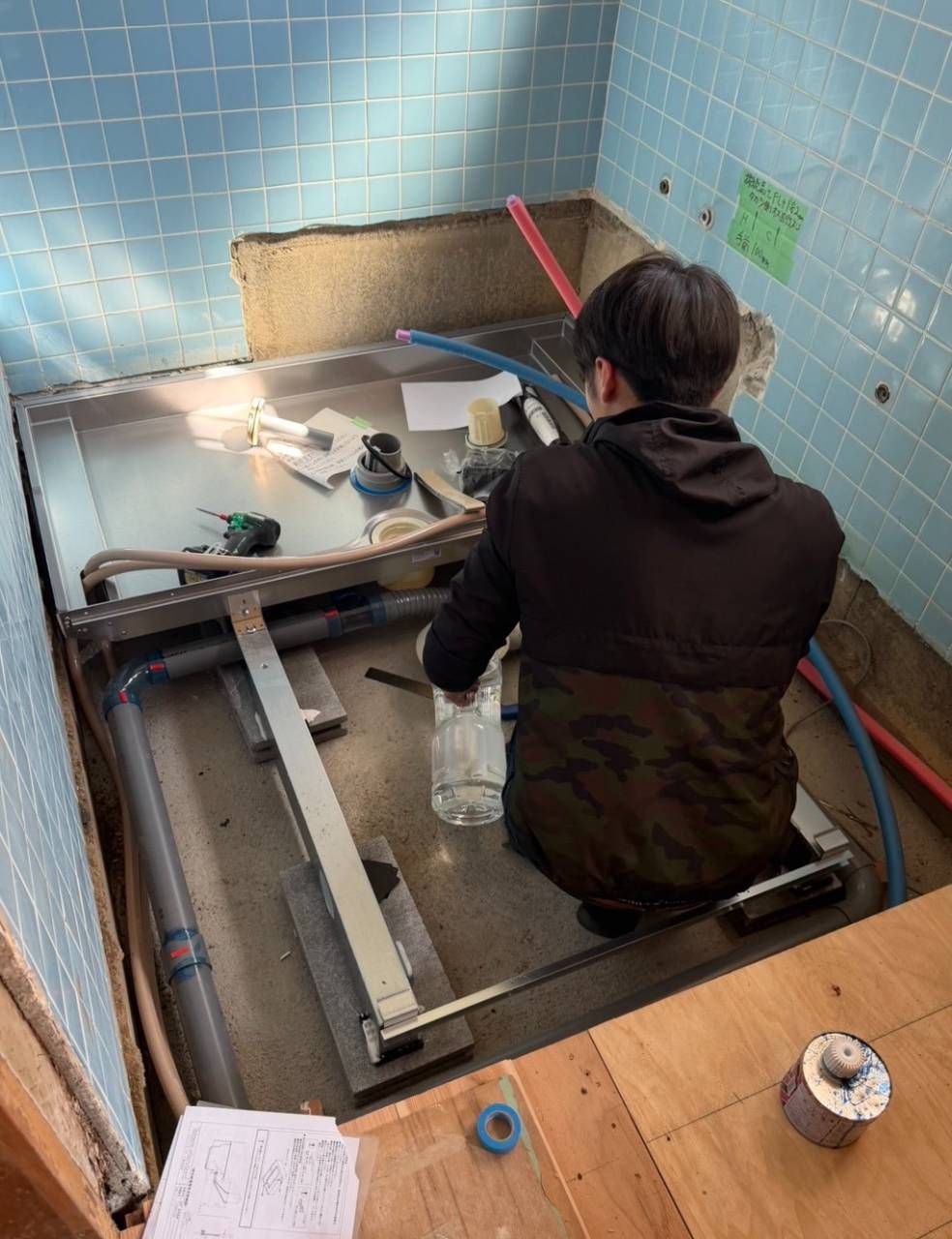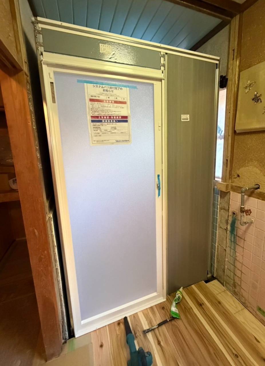 本日は、タカラスタンダードの『ピッタリサイズ』システムバス・グランスパの設置工事を行いました。